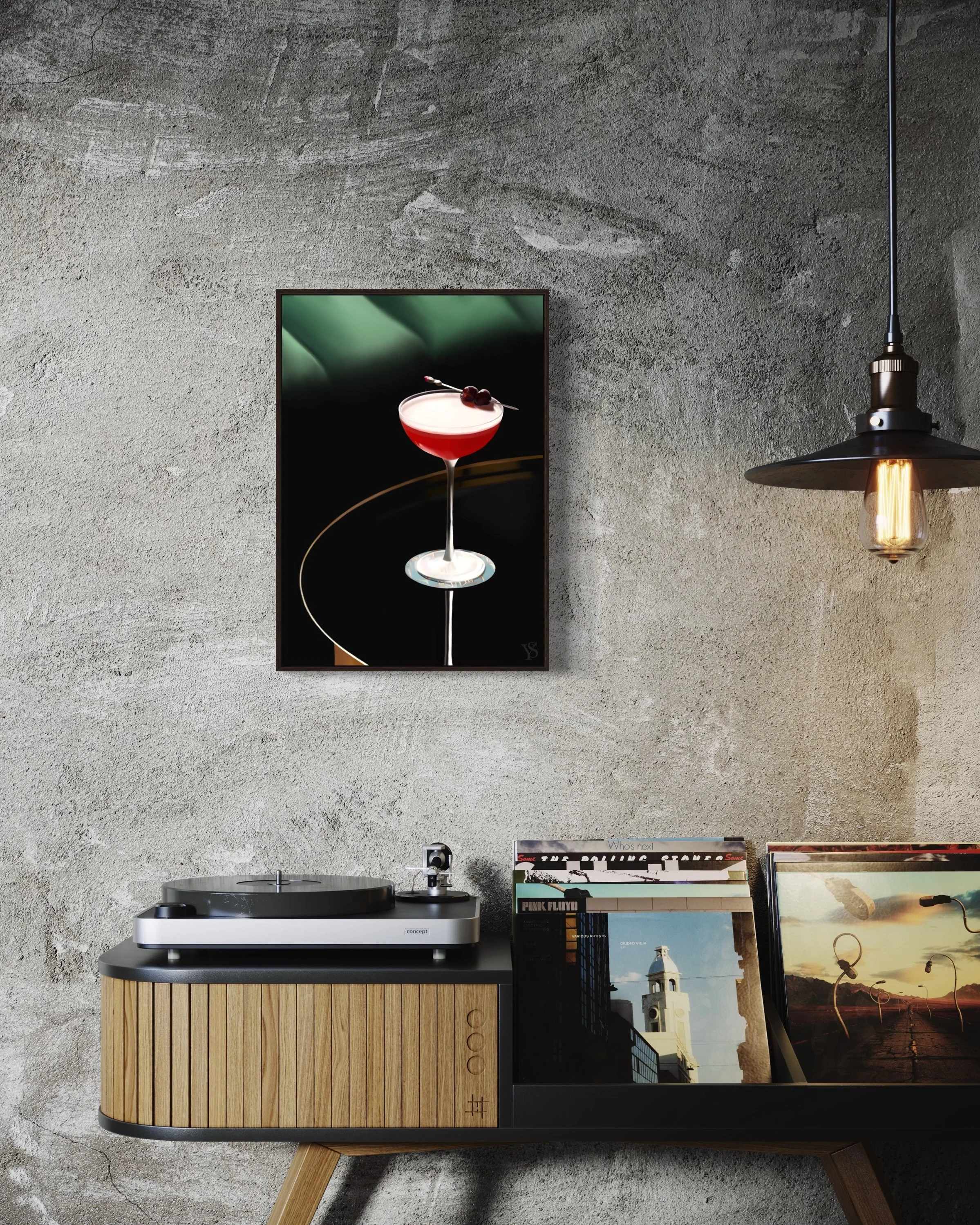 This stylish ‘Mary Pickford Cocktail’ art print is perfect for adding a touch of elegance and modernity to your interior. Here’s how to style it: